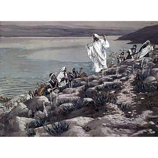 The Sermon on the Mount: Museumists Exhortation to the Twelve AVintagetles Black Modern Wood Framed Art Print with Double Matting by Tissot, James