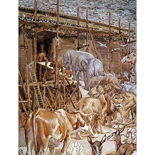 The Animals Enter the Ark Black Modern Wood Framed Art Print with Double Matting by Tissot, James