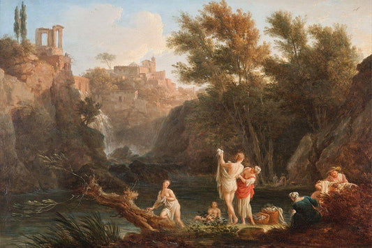 Four Times of the Day, Evening White Modern Wood Framed Art Print with Double Matting by Vernet, Claude Joseph