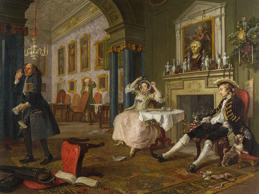 Marriage A la Mode 2 The Tete a Tete White Modern Wood Framed Art Print with Double Matting by Hogarth, William