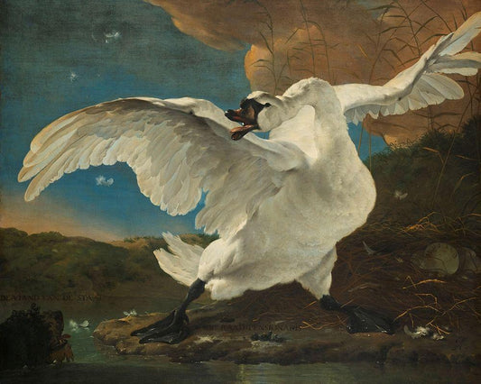 The Threatened Swan White Modern Wood Framed Art Print with Double Matting by Asselijn, Jan