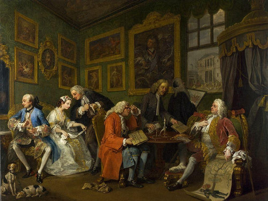 Marriage A la Mode 1 The Marriage Settlement White Modern Wood Framed Art Print with Double Matting by Hogarth, William