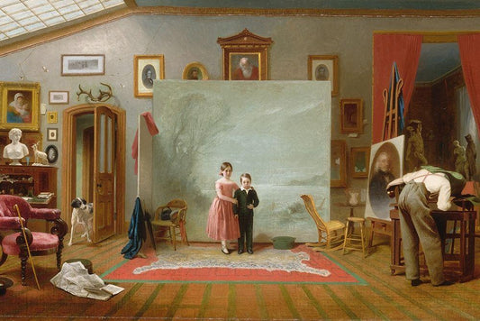 Interior with Portraits White Modern Wood Framed Art Print with Double Matting by Le Clear, Thomas
