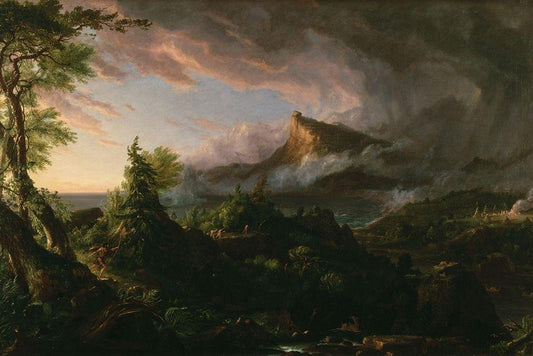 The Savage State from The Course of Empire White Modern Wood Framed Art Print with Double Matting by Cole, Thomas