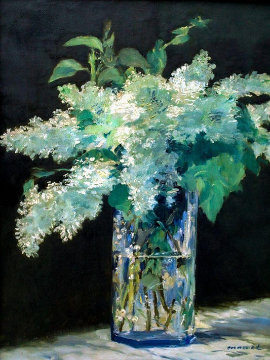 White Lilac White Modern Wood Framed Art Print with Double Matting by Manet, Edouard