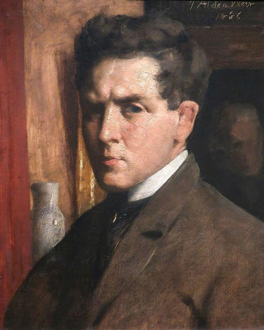 Self Portrait White Modern Wood Framed Art Print with Double Matting by Weir, J Alden