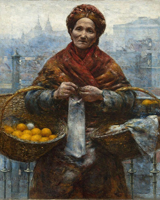 Jewish woman selling oranges White Modern Wood Framed Art Print with Double Matting by Gierymski, Aleksander