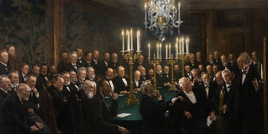A meeting in the Royal Danish Academy of Sciences and Letters White Modern Wood Framed Art Print with Double Matting by Kroyer, Peder Severin