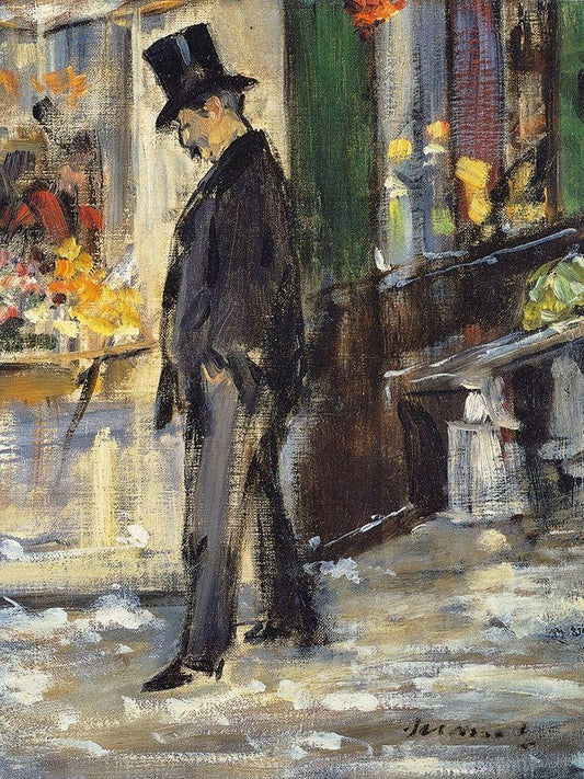 Promeneur White Modern Wood Framed Art Print with Double Matting by Manet, Edouard