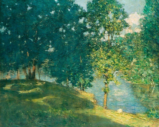 Afternoon by the Pond White Modern Wood Framed Art Print with Double Matting by Weir, J Alden