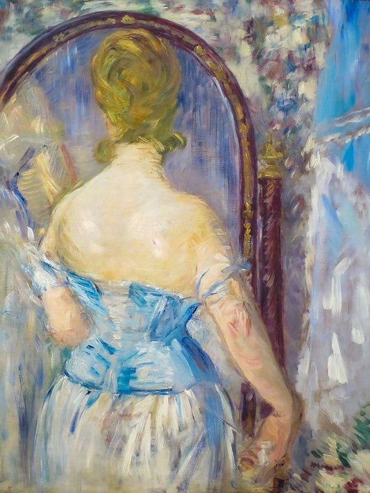 Woman Before a Mirror White Modern Wood Framed Art Print with Double Matting by Manet, Edouard
