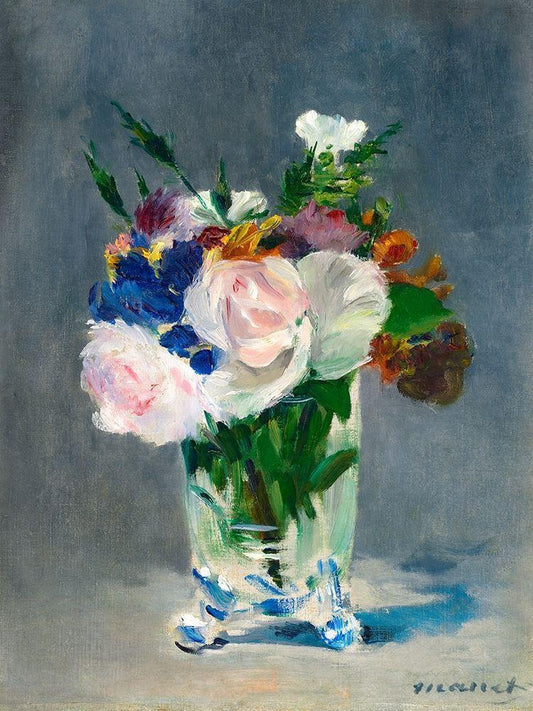 Flowers in a Crystal Vase White Modern Wood Framed Art Print with Double Matting by Manet, Edouard