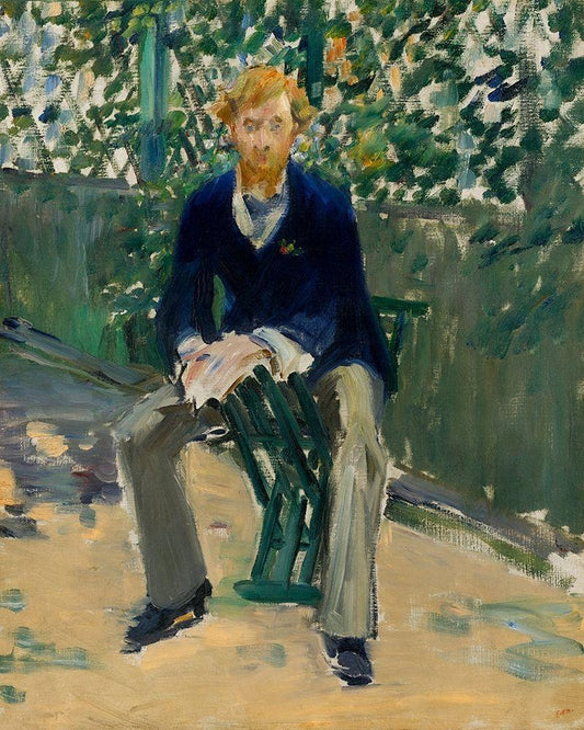 George Moore in the Artists Garden White Modern Wood Framed Art Print with Double Matting by Manet, Edouard