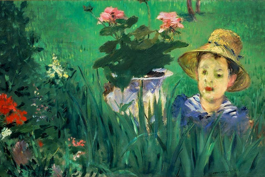 Boy in Flowers White Modern Wood Framed Art Print with Double Matting by Manet, Edouard