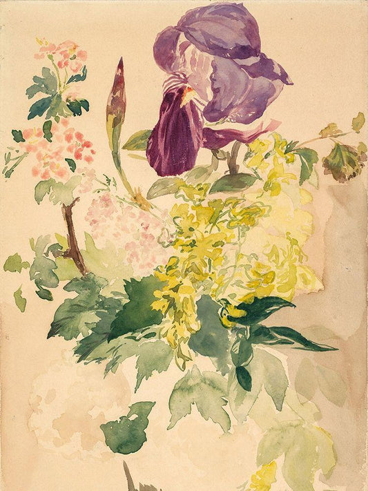 Flower Piece with Iris, Laburnum, and Geranium, 1880 White Modern Wood Framed Art Print with Double Matting by Manet, Edouard