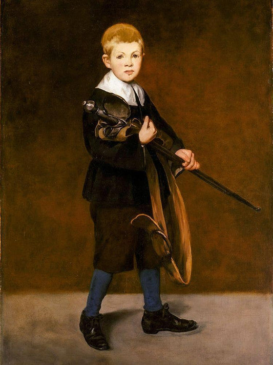 The Child with the Sword White Modern Wood Framed Art Print with Double Matting by Manet, Edouard