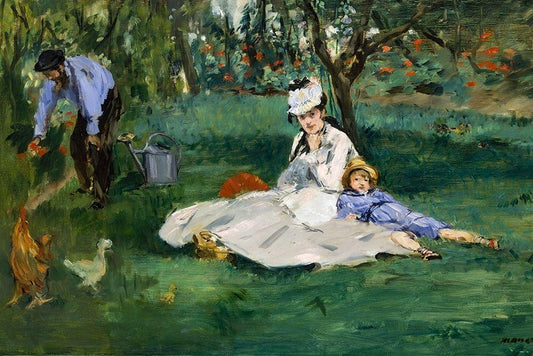 The Monet Family in Their Garden at Argenteuil White Modern Wood Framed Art Print with Double Matting by Manet, Edouard