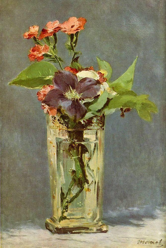 Carnations and clematis in a crystal vase White Modern Wood Framed Art Print with Double Matting by Manet, Edouard
