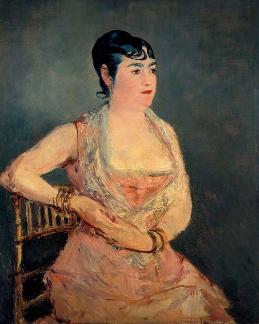 Lady in Pink White Modern Wood Framed Art Print with Double Matting by Manet, Edouard