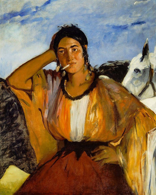 Gypsy with a Cigarette White Modern Wood Framed Art Print with Double Matting by Manet, Edouard