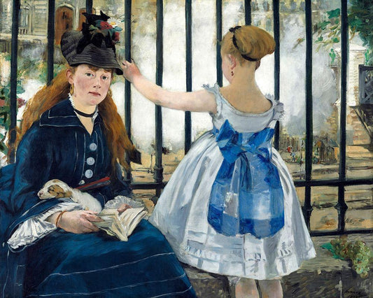 The Railway White Modern Wood Framed Art Print with Double Matting by Manet, Edouard