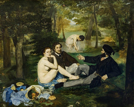 Luncheon on the Grass White Modern Wood Framed Art Print with Double Matting by Manet, Edouard