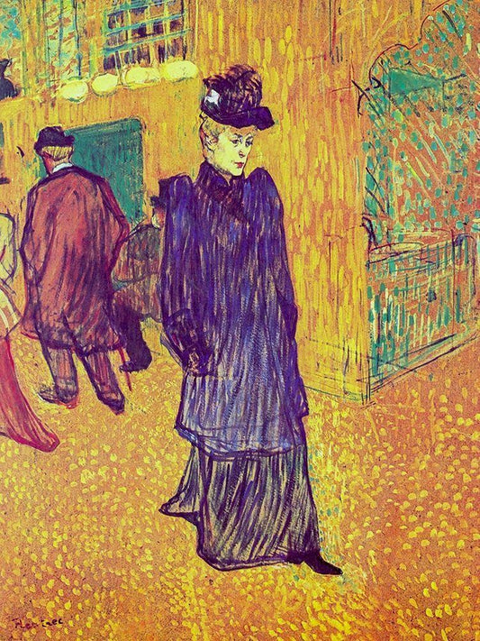 Jane Avril Leaving the Moulin Rouge White Modern Wood Framed Art Print with Double Matting by Toulouse-Lautrec, Henri de