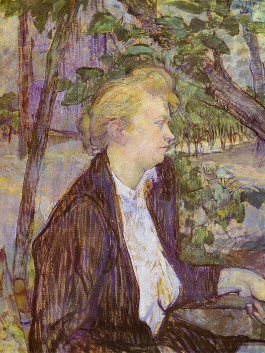 Woman in the Garden White Modern Wood Framed Art Print with Double Matting by Toulouse-Lautrec, Henri de
