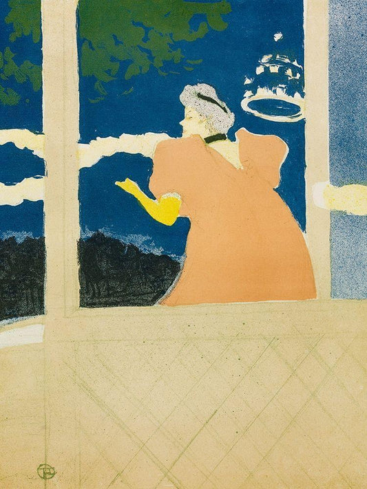 Woman seated in M. Forests Garden, Justine Dieuhl White Modern Wood Framed Art Print with Double Matting by Toulouse-Lautrec, Henri de