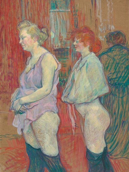 La Goulue and Her Sister White Modern Wood Framed Art Print with Double Matting by Toulouse-Lautrec, Henri de
