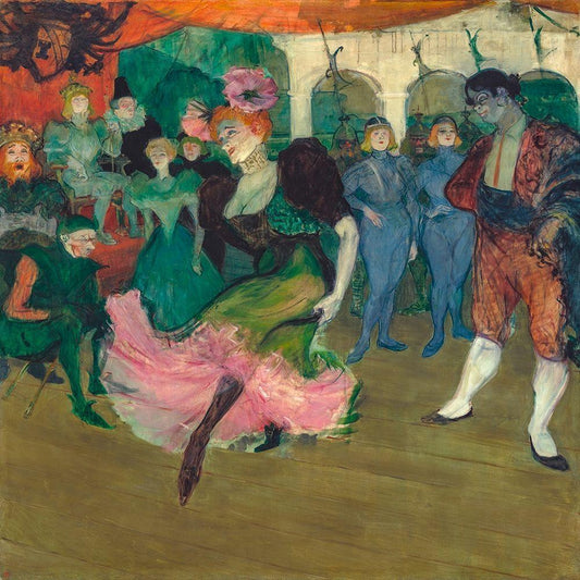 Quadrille at the Moulin Rouge White Modern Wood Framed Art Print with Double Matting by Toulouse-Lautrec, Henri de