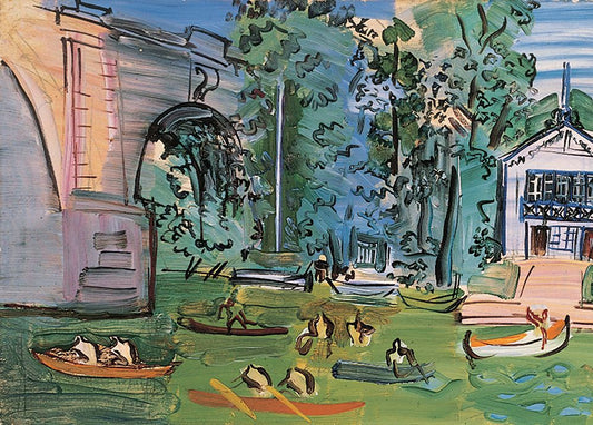 Canoeing White Modern Wood Framed Art Print with Double Matting by Unknown