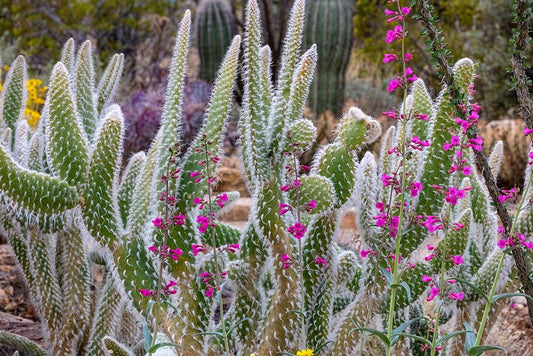 Wooly Jacket Prickly Pear Cactus and Penstemon at the Arizona Sonoran Desert Museum in Tucson-Arizo White Modern Wood Framed Art Print with Double Matting by Haney, Chuck