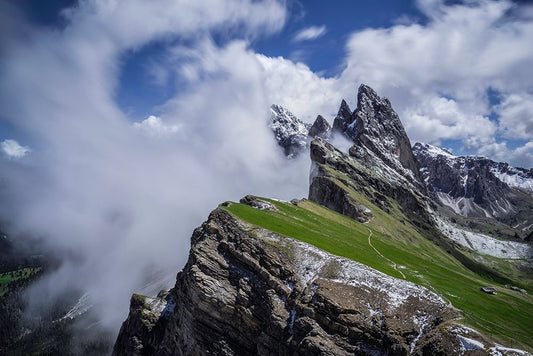 Europe-Italy-South Tyrol-Landscape with Dolomite Mountains White Modern Wood Framed Art Print with Double Matting by Jaynes Gallery