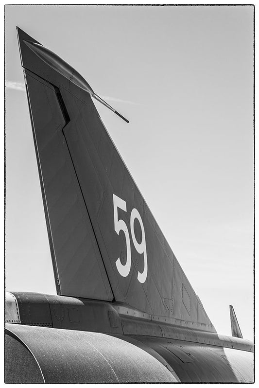 Sweden-Southeastern Sweden-Nykoping-F11 reconnaissance aircraft-F11 Museum-tail fin White Modern Wood Framed Art Print with Double Matting by Bibikow, Walter