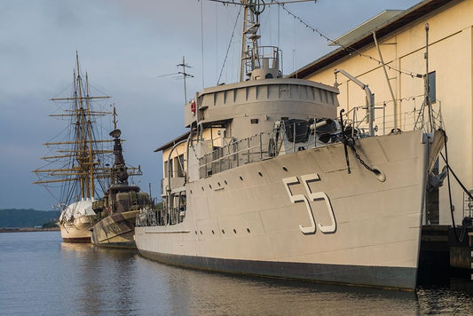 Southern Sweden-Karlskrona-Marinmuseum-marine museum-naval vessels White Modern Wood Framed Art Print with Double Matting by Bibikow, Walter