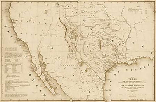 Map of Texas and the countries adjacent, 1844 - Decorative Sepia White Modern Wood Framed Art Print with Double Matting by H. Emory, William H., Emory, William