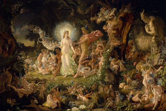 The Quarrel of Oberon and Titania White Modern Wood Framed Art Print with Double Matting by Paton, Sir Joseph Noel
