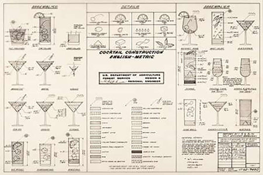 The Cocktail Construction Chart, U.S. National Forest Service, 1974 White Modern Wood Framed Art Print with Double Matting by Ketcham, Cleve Red"