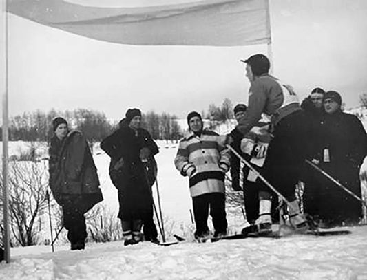 Finish Of Downhill Ski Race - Hanover, New Hampshire, 1936 White Modern Wood Framed Art Print with Double Matting by Rothstein, Arthur