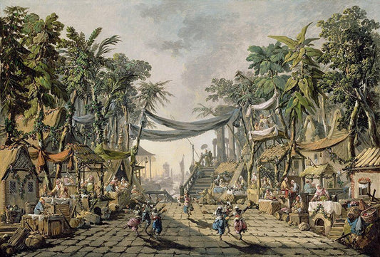 Market Scene in an Imaginary Oriental Port White Modern Wood Framed Art Print with Double Matting by Pillement, Jean-Baptiste