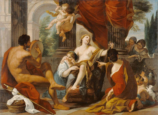 Hercules and Omphale White Modern Wood Framed Art Print with Double Matting by Garzi, Luigi