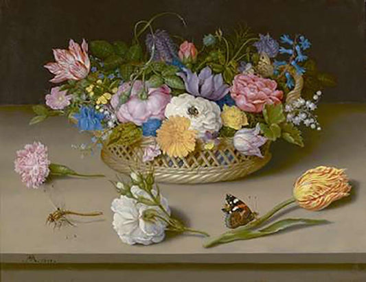 Flower Still Life White Modern Wood Framed Art Print with Double Matting by Bosschaert, Ambrosius