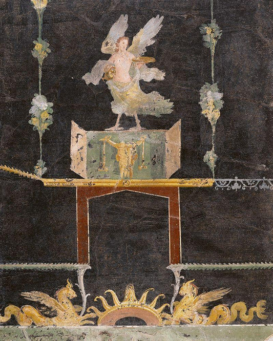 Wall fragment with Siren, Sea Monsters and Niche on Black Ground White Modern Wood Framed Art Print with Double Matting by Artisan, Unknown 1st Century Roman