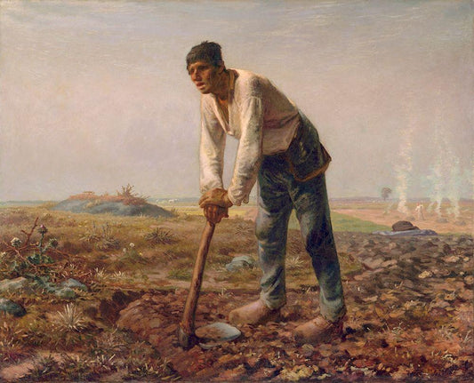 Man with a Hoe White Modern Wood Framed Art Print with Double Matting by Millet, Jean-Francois