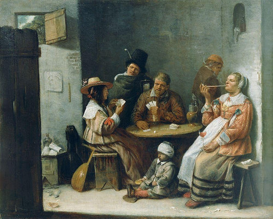Card Players White Modern Wood Framed Art Print with Double Matting by Van Craesbeeck, Josse