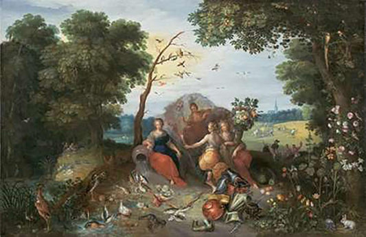 Landscape with Allegories of the Four Elements White Modern Wood Framed Art Print with Double Matting by Brueghel, Jan II