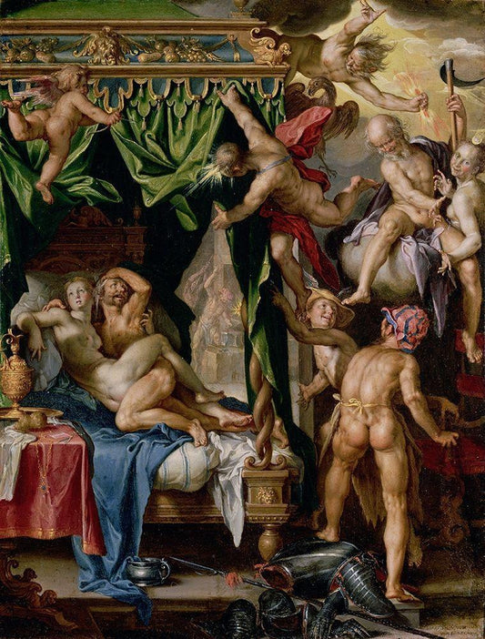 Mars and Venus Surprised by Vulcan White Modern Wood Framed Art Print with Double Matting by Wtewael, Joachim