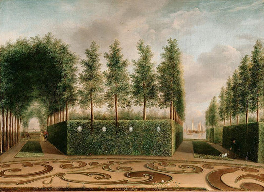 A Formal Garden White Modern Wood Framed Art Print with Double Matting by Janson, Johannes