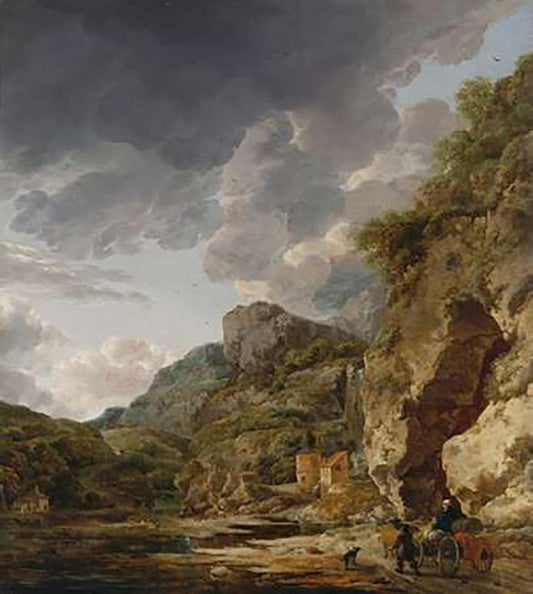 Mountain Landscape with River and Wagon White Modern Wood Framed Art Print with Double Matting by Nauwincx, Herman and Schellinks, Willem